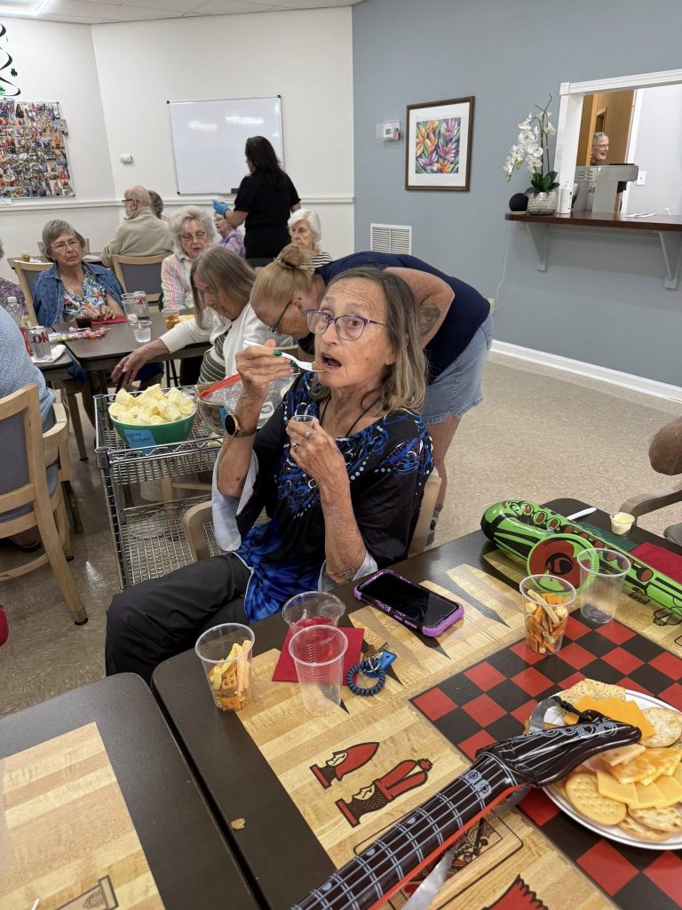 The Chipola Honky Tonk Lounge is a creative concept developed by residents themselves. The name “Chipola” was inspired by Woodland Towers’ address, adding a meaningful local touch to the space. For this special event, residents renamed one of the community’s activity rooms to transform it into a themed honky-tonk lounge — complete with music, dancing, and a festive atmosphere.
